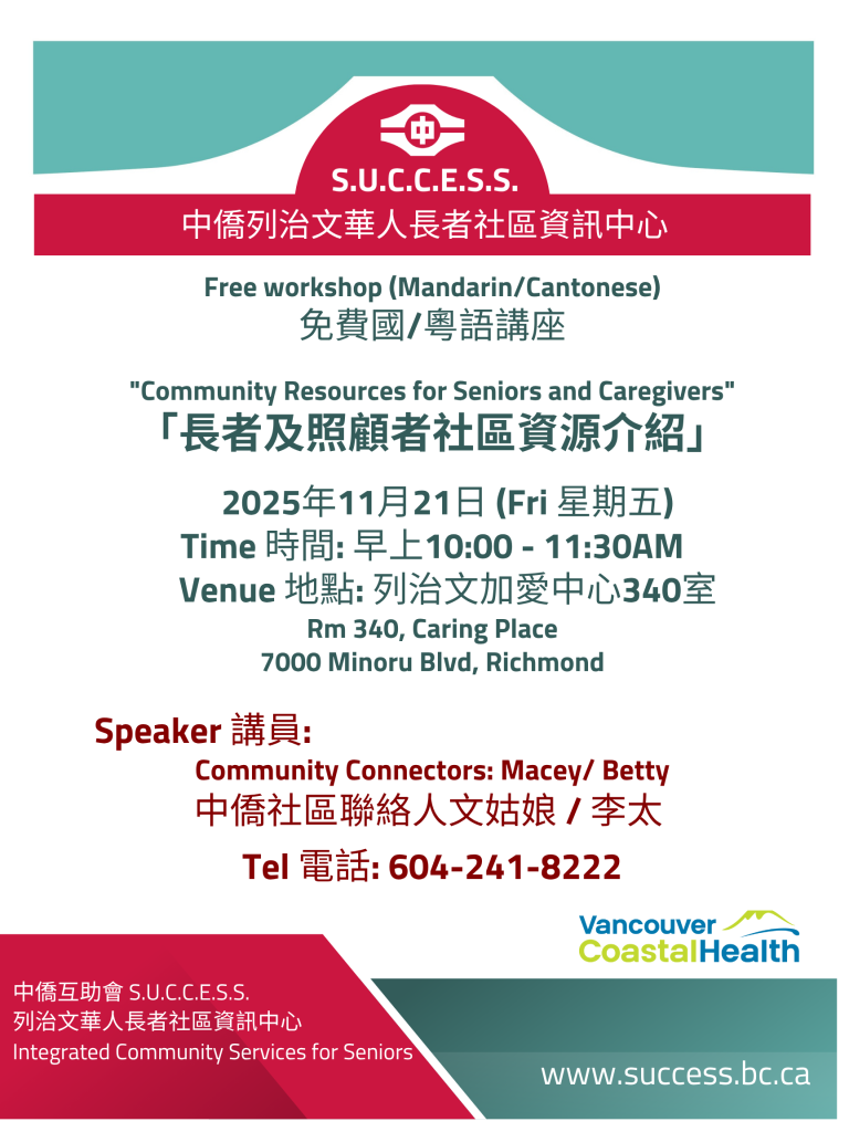 Community Resources for Seniors and Caregivers (Cantonese/Mandarin) 長者及照顧者社區資源介紹 (粵/國語)